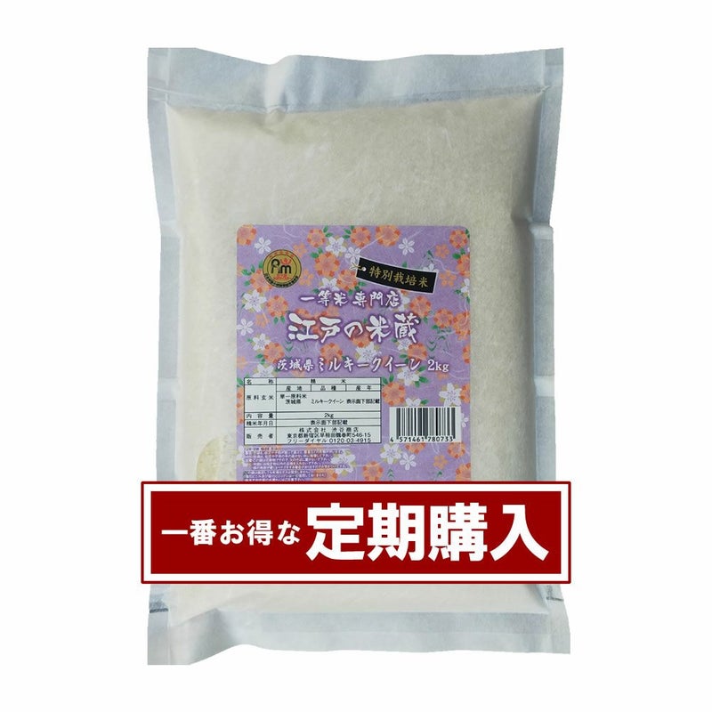 一番お得!通常より毎回8%引き+希少銘柄300g付 【定期購入】特別栽培米(減農薬・減化学肥料) 一等米 茨城県筑西産ミルキークイーン 2kg